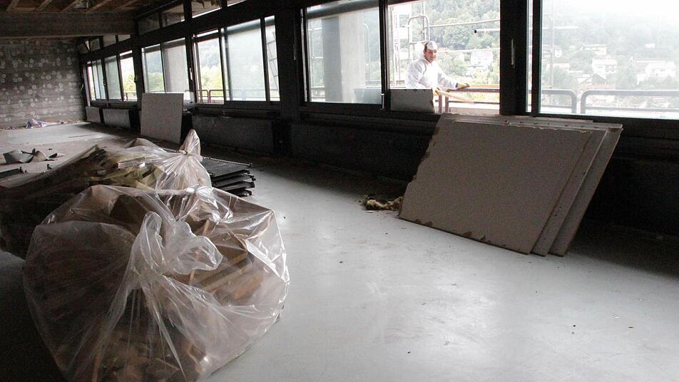 Die Sanierung des Gymnasiums Fränkische Schweiz hat bereits begonnen. Tonnenweise wurden schon Deckenverkleidungen, Dämm-Material und ramponierte Fußbodenbeläge entsorgt.