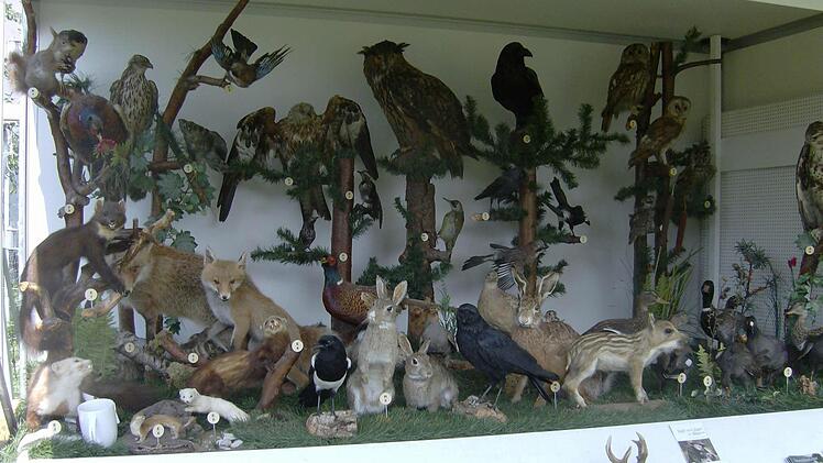 Greifvögel, Singvögel, Frischlinge, Kaninchen, Marder oder auch Füchse waren zudem in einem Art Jahrmarktsstand ausgestellt.