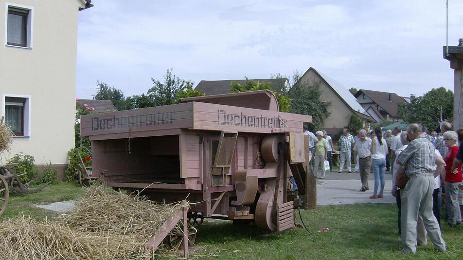 An einem der Dorfeingänge Haidhofs ratterte da eine alte Maschine. Vier Männer schlugen im Uhrzeigersinn auf am Boden liegende Ähren ein. Das herausgeklopfte Korn kam in eine andere Maschine und wurde anschließend darin geputzt. 650 Jahre ist die Ortschaft Haidhof in diesem Jahr geworden. Die Haidhofer wollten dieses Jubiläum nicht nur einfach mit viel Getränken und etwas Musik feiern, sondern ihren Besuchern darüber hinaus auch etwas Pädagogik angedeihen lassen.