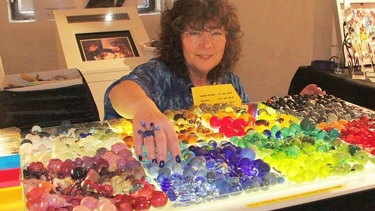 Staffelstein, lässt aus Esparto-Gras Vasen entstehen oder flicht Einkaufskörbe, die durch Kunststoff-Träger einen wirkungsvollen Kontrast erhalten. Mit bunten Glasperlen beschäftigt sich Ursula Distler, Dozentin für Glasgestaltung, aus Nürnberg. Sie fertigt auch Skulpturen aus Glas oder eine gläserne Hand als Beweis für verlorenes Glück. Ob Keramiker, Hut- oder Schuhmacher, Schmiedemeister oder Schmuck-Designer, die Aussteller werden einmal mehr dem Ruf des Marktes gerecht. Präsentiert wird Ausgefallenes und Ausgezeichnetes.