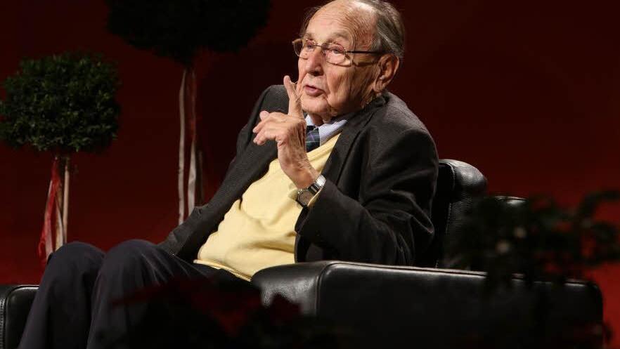 Auf dem Podium der Hirtenbachhalle dreht sich vieles um jenes Jahr 1989, als die Mauer fiel. Genscher hält keinen Vortrag am Stehpult, sondern sitzt im bequemen Ledersessel und lässt sich ausfragen von Frank Ebert, dem Redaktionsleiter von Oberfranken-TV. Altersflecken und belegte Stimme - seine 87 Jahre sind dem Ehrenvorsitzenden der FDP und dem ehemaligen Außenminister zu Beginn anzumerken. Aber das ist nur Oberfläche. Der Mann mit dem gelben Pullunder, den er auch am Donnerstag trägt, redet sich schnell frei und offenbart in jedem seiner geordneten Sätze einen klaren Geist.