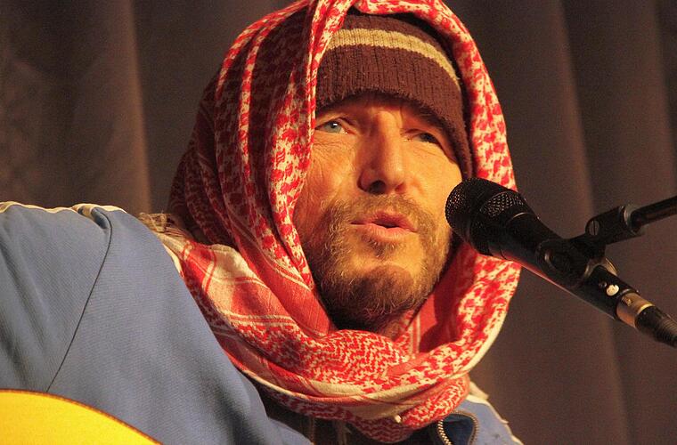 Im Gegenteil: lammfromm blickt er drein. Von der Seite betrachtet könnte man meinen, der Mann, der einmal sowas wie ein Popstar war, sei mit seinem Vollbart und der Luis- Trenker-Nase just von seiner Almwiese ins Tal herab gestiegen.