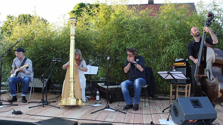 Derweil quakten die Frösche im benachbarten Gartenteich. Lilo Kraus und ihr Lebenspartner Chris Schmitt hatten an sich selbst den Anspruch gestellt eine kongeniale Verbindung zwischen Bluesharp und klassischer Konzertharfe zu schaffen.