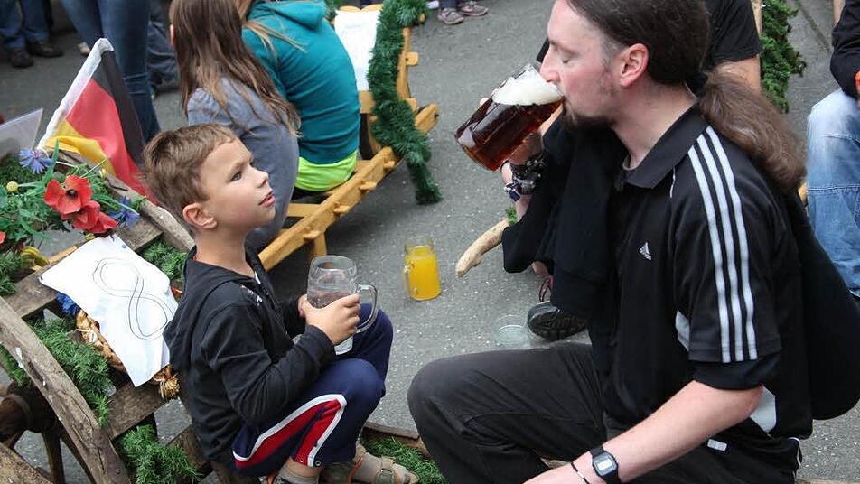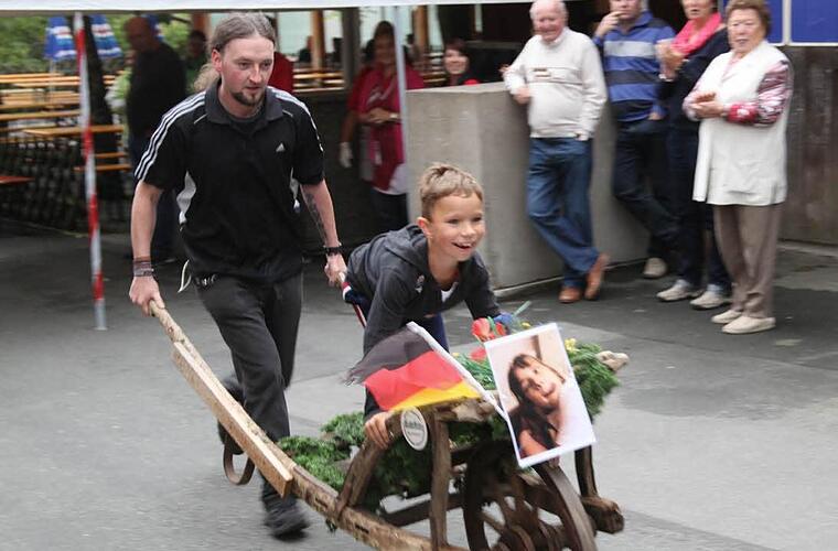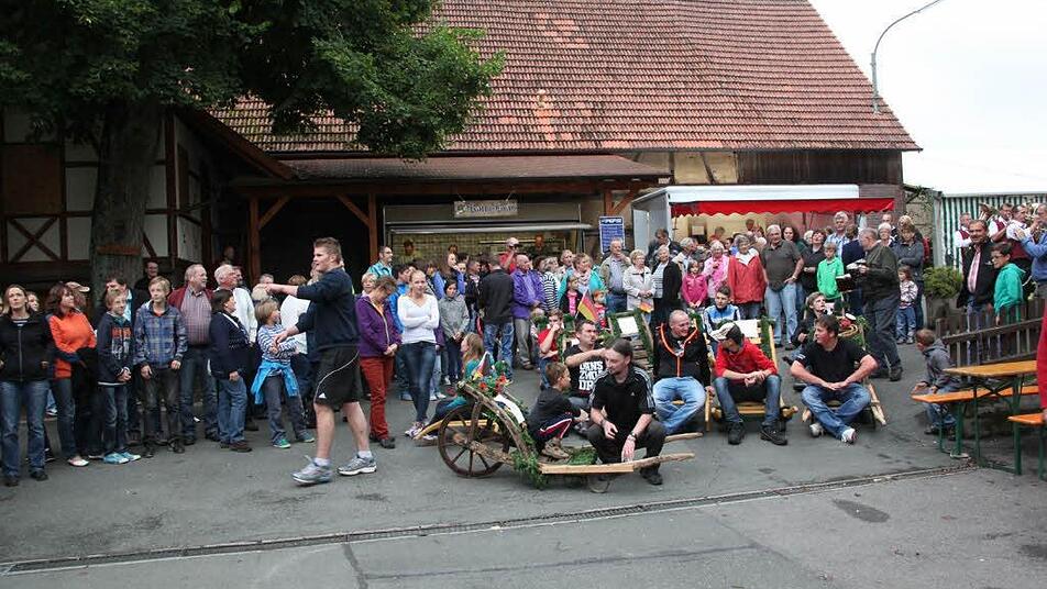 Höhepunkt der "Kerwa" in Heckenhof war wieder das Schubkarrenrennen, das der Stammtisch "Heckenhofer Bumbara" zum 35. Mal ausrichtete. Am Gaudi-Wettbewerb gingen zehn Teilnehmer aus der Region an den Start. Der jüngste Teilnehmerwar mit sieben Jahren Roben Baumann.