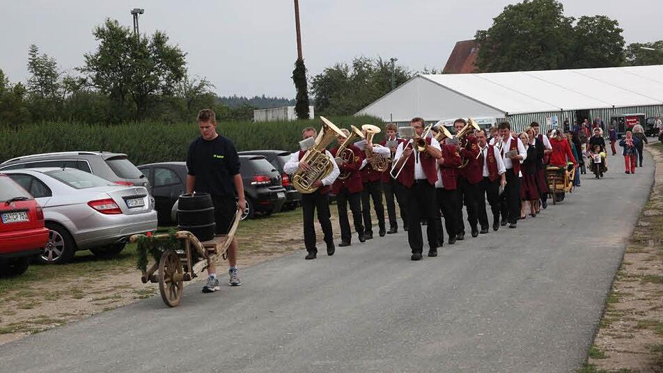 Viele Besucher hatten sich zum Rennen eingefunden. Die 1000-Meter-Strecke führte vom Festzelt der Kathi-Bräu rund um Heckenhof, über die Wiese durch das Dorf zur Bräu zurück.
