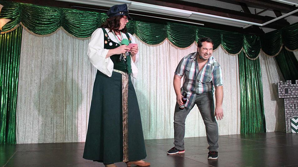 Neu war in diesem Jahr auch, dass Büttenredner Hans Göller von Fritz Penning auf dem Akkordeon begleitet wurde. Göller sprach über Aichingers Gerstensaft, der Spuren in der Unterwäsche hinterlässt; Wein, in dem die Wahrheit liegt und Schnaps, der die Verdauung fördert. Dazwischen brachte Penning das lachende Publikum zum Schunkeln. Matthias Müller begeisterte als Betrunkener, der sein Auto suchte. Die "Sternschnecken" erhielten viel Applaus für ihre Darbietung. Tänzerin Alina fragte anschließend, ob das Publikum wisse, wie ein übergewichtiger Veganer heißt - "Biotonne!".