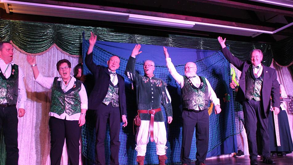 Zugabe wurde auch von den Mitgliedern der Feuerwehr Oberngrub verlangt, die einen gesungenen Sketch zum Besten gaben. Heiß ersehnt war der Auftritt der "Linden von Heiligenstadt", eine Persiflage auf "Waltraud und Mariechen" von den Fürther Kabarettisten Martin Rassau und Volker Heißmann. Silke Arndt und Eva-Katharina Schmidt philosophierten bei Stadtwurst mit Senf über die neue Kläranlage. Sie fragten sich ob die nicht überdimensioniert sei, denn "so viel kackern tu ich fei net." Das Männerballett Heiligenstadt, in dem auch Markgraf Michael mittanzte, heizte am Ende das Publikum noch einmal mit "AC/DC" richtig ein, sodass der Abend mit fetzigen Rhythmen und viel Applaus zu Ende ging.