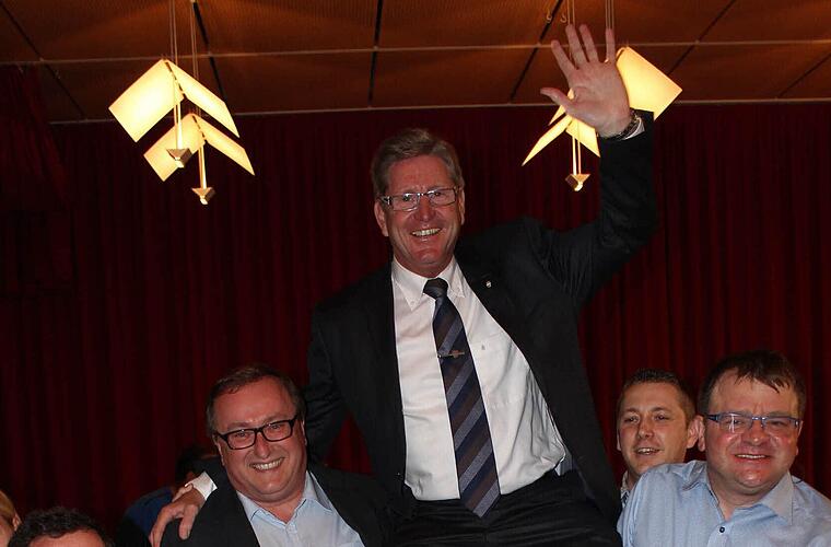 Die Begeisterung unter den Anhängern des 59-jährigen Heinz Richter, allen voran bei Ehefrau Silvia und Tochter Sandra, die ihm in der Gemeinderatsarbeit stets eine verlässliche Hilfe war, kannte dann auch auf der Wahlparty im Kolpingsaal keine Grenzen. Dort trugen sie den Wahlsieger gar auf Händen.