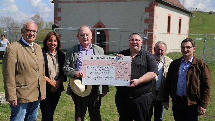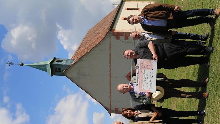 Ein klares Signal der Wertschätzung für die Walpurgiskapelle und ihre überregionale Bedeutung auf dem Walberla setzte der Heimatverein Forchheim. Bei einem Ortstermin übergab Vorsitzender Dieter George einen Spendenscheck in Höhe von 7500 Euro an Pfarrer Michael Gehret von der zuständigen Pfarrei St. Matthäus Wiesenthau. Mit von der Partie waren zudem Eduard Nöth, Mitglied des Landesverbandes Bayerische Denkmalpflege, Karl Heinz Distler, Vorsitzender des Vereins zur Wahrung des Fränkischen Brauchtums, einer Untergruppe des Heimatvereins Forchheim, Evi Rossa, Mitglied des Heimatvereins,sowie Otto Roppelt als Kapellenpfleger.
