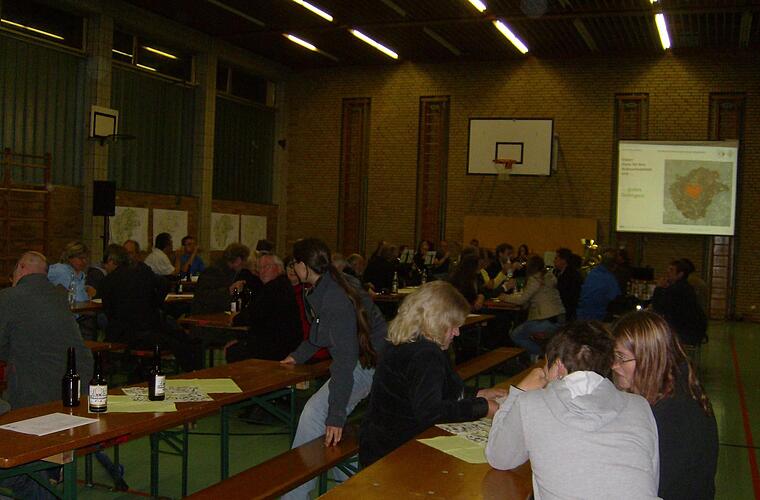 Denn gerade die veränderte Bevölkerungsstruktur ist auf dem Land, in den Dörfern spürbar und eine sichere Zukunft haben nur Gemeinden, die rechtzeitig gegensteuern und Basisstrukturen wie Versorgung, Bildung, Verkehrs- und Kommunikationswege erhalten. "Hier ist viel für eine lebenswerte Zukunft gearbeitet worden", betont Ulm, der auch das Leuchtturmprojekt mit dem neuen Obstzentrum anspricht, bevor der Planer Rosemann vom Planungsbüro Topas den Gästen in der Schulturnhalle das Projekt näher erklärt.