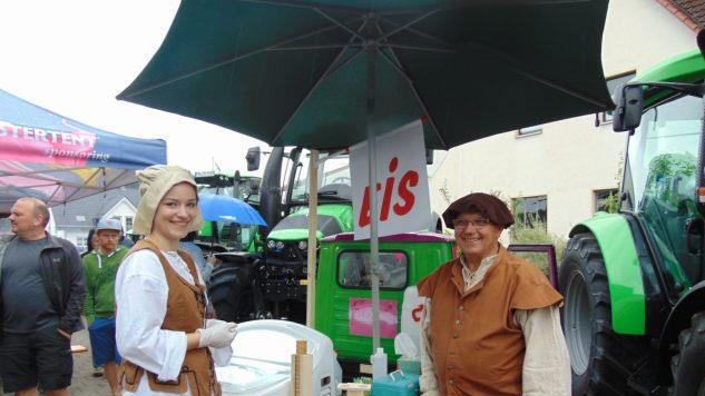 Von anderswo war lautes Maschinengeratter zu hören. Die modernen Traktoren waren es nicht. Hinten auf einer Wiese standen stattdessen historische landwirtschaftliche Maschinen, wie sie noch im Jahr 1936 für die Arbeit verwendet wurden. Am Ende der Wiese sah man Kinder in ritterlichen Gewändern mit langen baseballähnlichen Schlägern hantieren. Jugger heißt das Spiel.