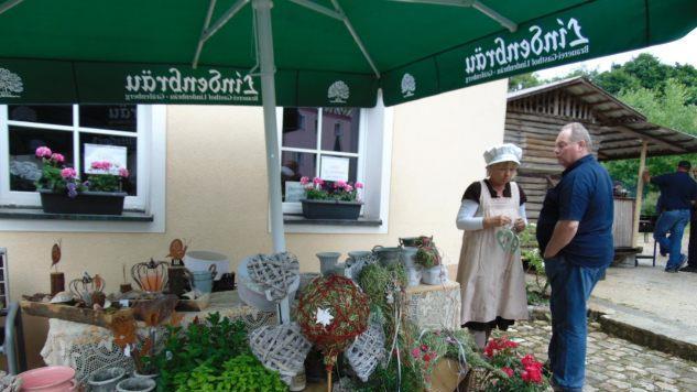 Und der dritte Mann, der vor dem historischen Spörlhaus Handwerk zum Anfassen bot, band einen Reisigbesen. Auch diese sind inzwischen eine Rarität und gehören doch zum Markt. Währenddessen ließen sich die Besucher in dem ehemaligen Brauhaus erklären, wer wann welches Pflegeamt innehatte und wie es nach der Säkularisation mit dem Ort weiterging.