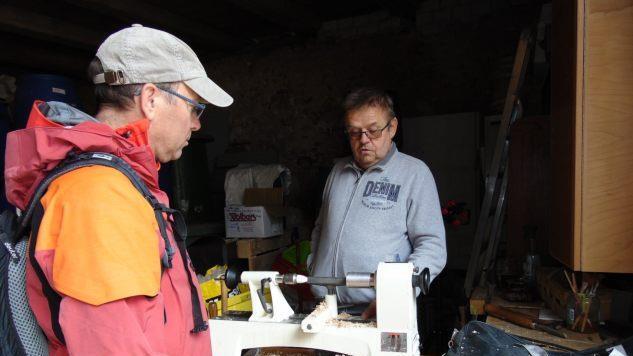 Vor dem Spörlhaus saßen drei Handwerksleute. Eine Frau drehte das Spinnrad, gab immer wieder Schafswolle nach, um Fäden daraus zu spinnen. Von ihrer Großmutter hat die Frau das Spinnen gelernt; ein Handwerk, das längst in Vergessenheit geraten ist.