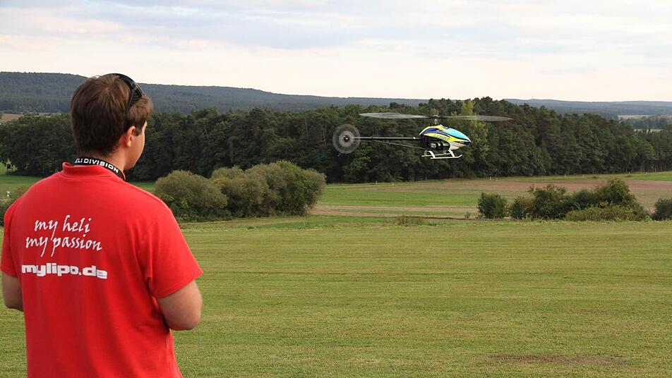 Patrick Schanz aus Steinbach führte seinen BO 105 vor, einen Scale-Hubschrauber mit Turbine. Er ist 14,5 Kilo schwer, hat einen vierblättrigen Rotorkopf. Auf etwa 15 000 Euro schätzt der 41-Jährige den Wert seines Hubschraubers, den er selbst detailgetreu nachgebaut hat. Der 21-jährige Dominik Weber aus Schweinfurt steht auf 3D-Flug. "Der Hubschrauber kann gar nicht leicht genug sein, umso besser ist er in der Luft zu bewegen", erklärt er. Sein Fluggerät ist mit circa 1600 Euro günstiger, aber immer noch ein teurer Spaß, wenn man einen Fehler an der Fernsteuerung macht.
