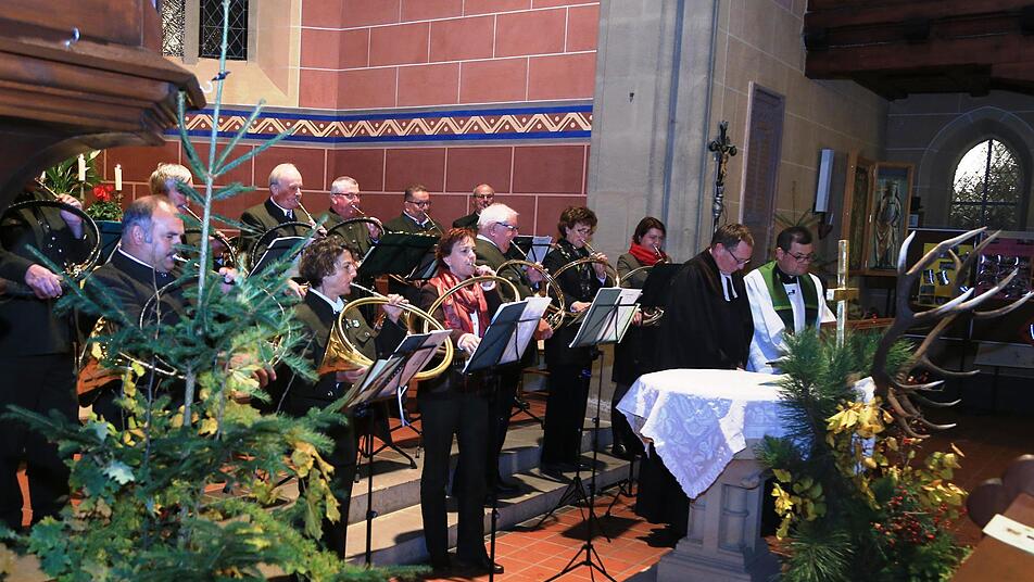 Feierlich ist eine Orgel, nicht weniger bewegend erwies sich für die musikalische Gestaltung der weiche Klang der Jagdhörner. Es fühlte sich an wie das Atmen der Natur. Es gibt viele Instrumente, um Gott zu ehren, meinte denn auch Pfarrer Matthias Haag, der sich über eine volle Kirche freute. Er begrüßte die Gäste in seinem evangelischen "ökumenischen Gotteshaus", wo an diesem Abend mit den Weidmännern deutlich mehr Männer als Frauen anwesend waren, um zu feiern mit den Jägern, die die Schöpfung bewahren, wie Haag sagte. "Die Schöpfung seufzt, sind die Jäger der Grund in der Natur?", fragte Pfarrer Florian Stark, sein katholischer Kollege aus dem benachbarten Pretzfeld, mit dem er gemeinsam die Hubertusmesse feierte. So einfach sei das nicht, meinte Stark und erinnerte an die wertvolle Hege und Pflege der Jäger, an den gemeinsamen Schöpfungsauftrag, die Ruhezonen für jedes Geschöpf oder auch die Pflege des Waldes. "Jäger sein heißt nicht, die Natur ausnutzen, sondern sie mit Ehrfurcht zu behandeln. Feiern wir Erntedank im Jagdbereich als ökumenisch verbundene Gemeinde", sagte Stark in seiner Predigt.