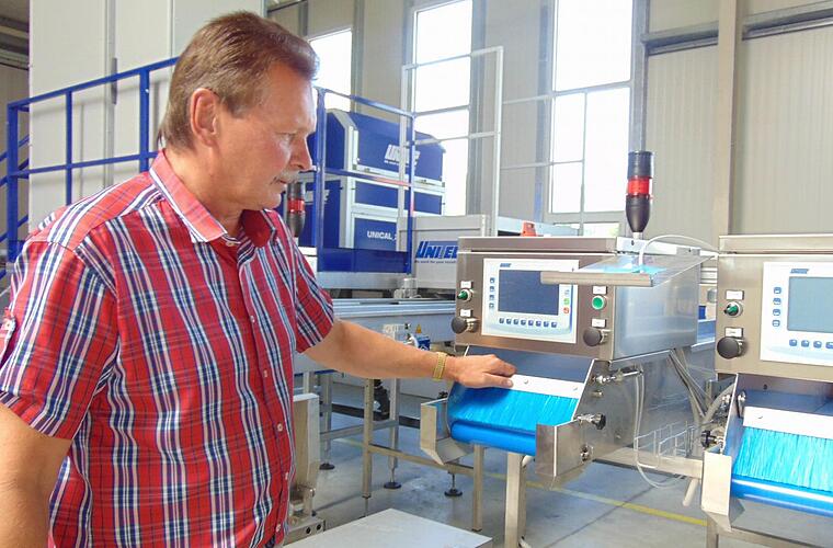 Der Blick fällt dabei gleich auf eine 35 Meter lange Maschine. blau und silbern glänzend. Wasser befindet sich in der neuen Sortieranlage, die für 550 000 Euro angeschafft worden ist. Genau in dem Wasserbecken beginnt der Arbeitsvorgang. Die Kirschen werden gewaschen und dann weiter transportiert, vereinzelt und von den Stielen getrennt, bevor sie in einen hohen Kastenteil der Maschine gelangen: die optische Erfassung.