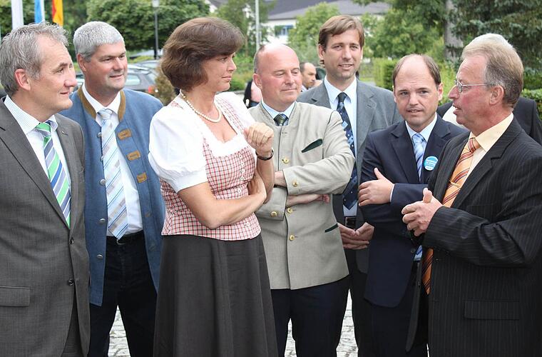 "Wiesenttals Bürgermeister (r.) bemühte sich unter den Augen aufmerksamer CSU-Politikern, Ilse Aigner einen ersten Eindruck von der Situation im Markts zu geben."