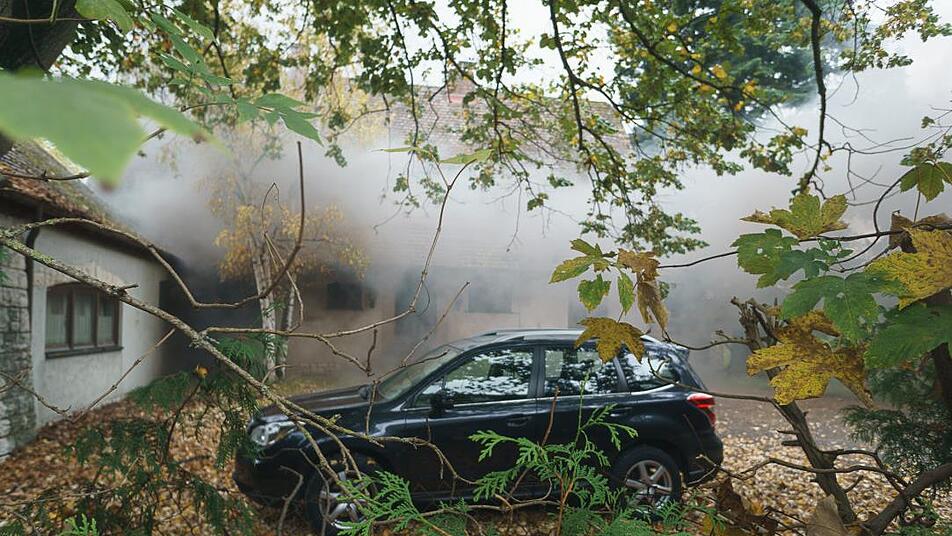 Nach dem Mittagessen erfolgte die Alarmierung zur letzten Einsatzübung: zu einem Wohnhausbrand, ausgelöst durch eine Fettexplosion in der Küche eines Anwesens. Bereits auf der Anfahrt war eine starke Rauchentwicklung, inszeniert von der Übungsleitung, zu erkennen. Beim Eintreffen des Löschzuges rief zudem eine Person auf einem Balkon an der Rückseite des Gebäudes um Hilfe. Während diese über eine Steckleiter umgehend gerettet wurde, gingen mehrere Atemschutztrupps zur Personensuche und Brandbekämpfung in das Gebäude vor. Sowohl im Erdgeschoss als auch im Obergeschoss wurde jeweils eine weitere Person gefunden und gerettet.