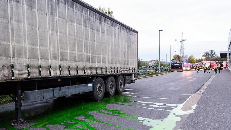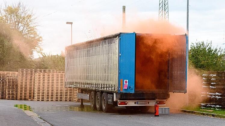Bereits kurz nach der Einweisung in den weiteren Ablauf erwartete die Aktiven eine besondere Herausforderung: Beim Abladen eines Stückgut-Transporters auf einem Firmengelände im Forchheimer Süden wurde ein mit einer gefährlichen Flüssigkeit gefüllter Behälter beschädigt.