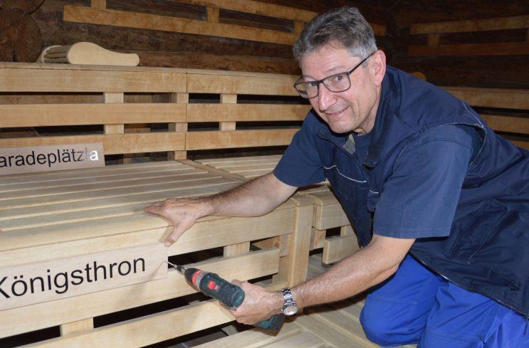 Das Gleiche gilt für den Besuch der Saunawelt. Die Besucher können sich ab der Umkleide im ganzen Saunabereich und in den Saunen ohne Maske bewegen. Die Saunawelt hat montags bis freitags von 13 bis 22 Uhr, an Samstagen sowie sonn- und feiertags von 10 bis 22 Uhr geöffnet. Samstags findet die Familiensauna statt. Alle vier Saunen - die finnische Sauna "Solana", die Event-Sauna, die Kräuter-Sauna und die Erd-Sauna - stehen zur Verfügung. Hier schwitzen die Gäste zukünftig in der "Kaiserpfalz", am "Ochsenklavier", im "Wasserschloss", im "Schwedengraben" oder auf dem "Brauereiweg": Diese und weitere Namen mit typisch Forchheimer Lokalitäten oder auch mit internationalen Orten ("Nordpol", Kilimandscharo", "Ätna") beziehungsweise Namen je nach Charakter des Saunierenden ("Prachtkerl", "Weichei", "Prachtweib") kennzeichnen mit einem Augenzwinkern die jeweiligen Schwitz-Plätze. Namenlose Plätze müssen abstandshalber freibleiben. Badeschlappen-Parkplätze vor der Tür werden die Personenzahl in der Sauna anzeigen: Ist das Regal belegt, ist die "Hütte voll".