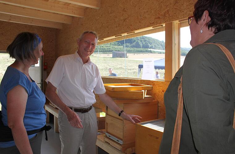 Neben Politikern waren auch die Bierkönigin Miriam Leiner, ihre Vorgängerin Carina Schneider, die Meerrettichkönigin Maria Kohlmann und die Kirschenkönigin Sandra Grau gekommen. Im hinteren Bereich des Geländes war wieder ein Bienenvolk zu sehen. "Die waren weg während der Bauarbeiten", erzählte der Hobbyimker und Pretzfelder Marktgemeinderat Jürgen Kaiser (CSU/BB). Er ist einer der Fans des Kreislehrbienenstandes: "Ich habe mich schon immer für Umwelt interessiert und kam dann sonntags zu den Veranstaltungen hierher."