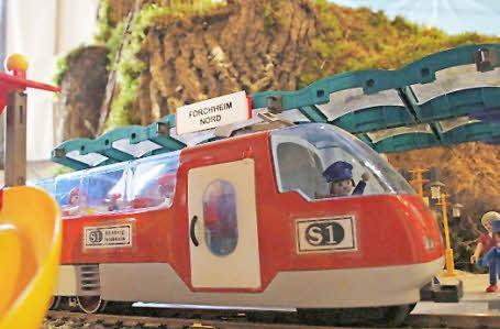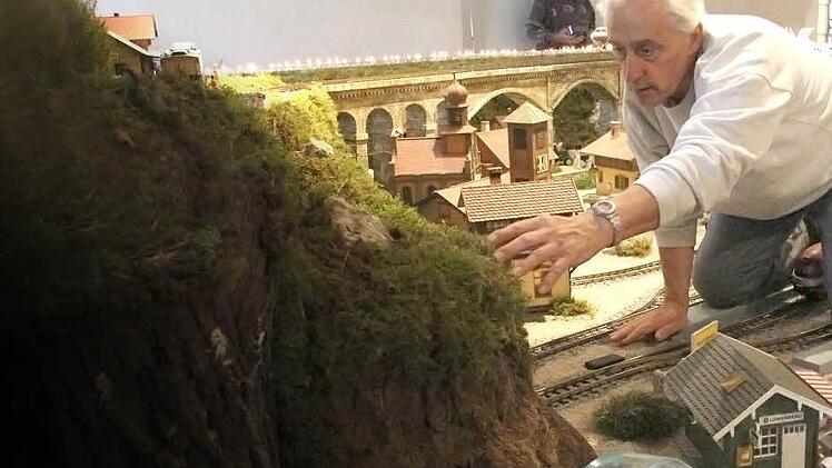 Neu in der Modellbau-Ausstellung ist ein großer, rund zwei Meter langer Viadukt, über den eine Schienenstrecke führt. Gebaut hat sie Dekorateur Walter Scholz. Im Januar, als die letzte Ausstellung abgebaut wurde, arbeitete er sechs Wochen in seinem Hobbykeller, um diese Attraktion anzufertigen. Die Arbeit am Geländer, das sein Sohn gefertigt hat, dauerte weitere sechs Stunden.