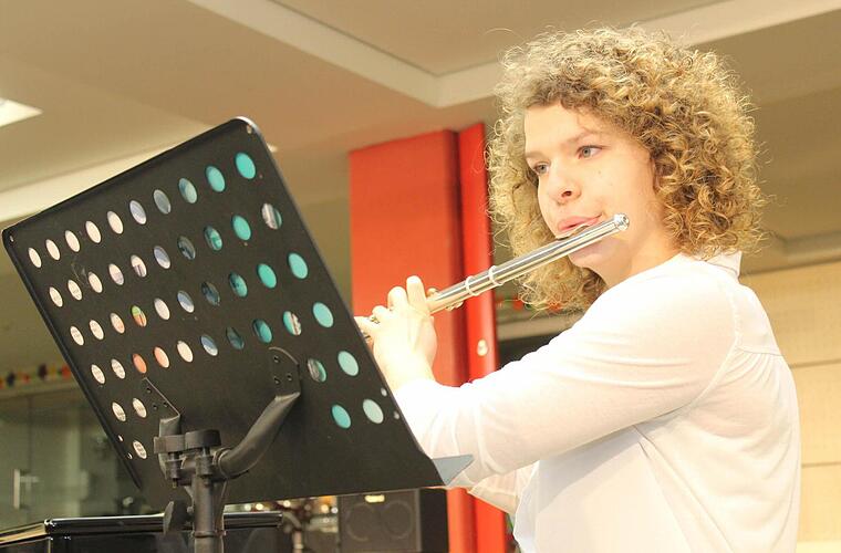 Prächtiges Solo auf der Flöte Ihr Vortrag wurde vielleicht nur noch getoppt vom Flöten-Solo Carolin Grassers, die das "Presto" von Marc Berthomieu spielte.