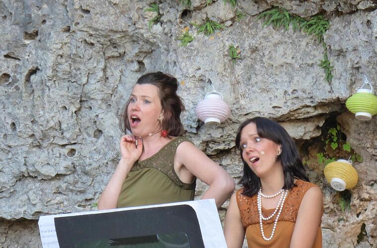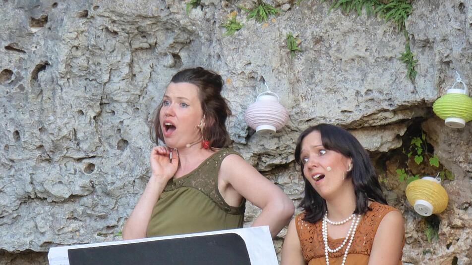 Mit rund 70 Zuhörern war das heitere Stück "Singende Fische in der Sommerfrische" von und mit Viola Robakowski und Ruth Weisel vom Fränkischen Theatersommer auf der Felsenbühne im Höhenschwimmbad nicht so gut besucht wie die Theaterabende des Fördervereins Höhenschwimmbad Gößweinstein in den vergangenen Jahren. "Sonst hatten wir immer so an die 100 Besucher", sagte Clemens Schrüfer, Zweiter Vorsitzender des Fördervereins.