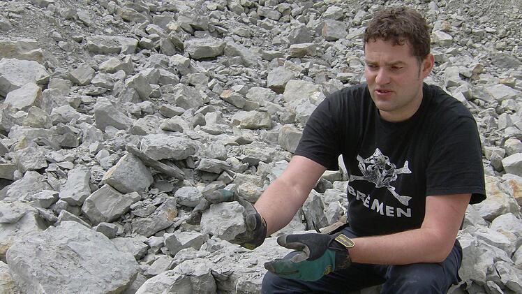 Zum zweiten Mal ist Billert jetzt im Gräfenberger Steinbruch. Mit einer Druckluftstichel arbeitet er daheim in Jena unter dem Mikroskop das Gestein rundherum weg. "Das dauert einige Stunden, geht aber wunderbar", sagt er.