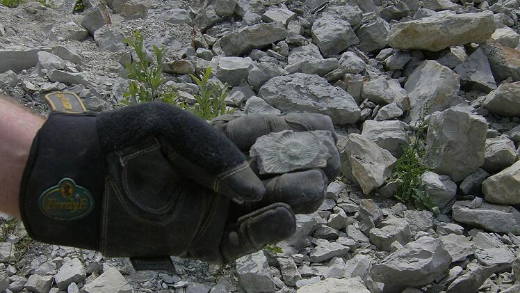 "Es war hier früher eine Lagune und ist deshalb wie ein Friedhof für Ammoniten. Innerhalb einer Viertelstunde findet man Ammoniten in ungewöhnlicher Dichte", sagte der Steinbruchbesitzer Wolfgang Endreß. Er weiß auch, dass Geologen oder Hobbysammler großes Interesse an diesem Ammonitenfriedhof haben.