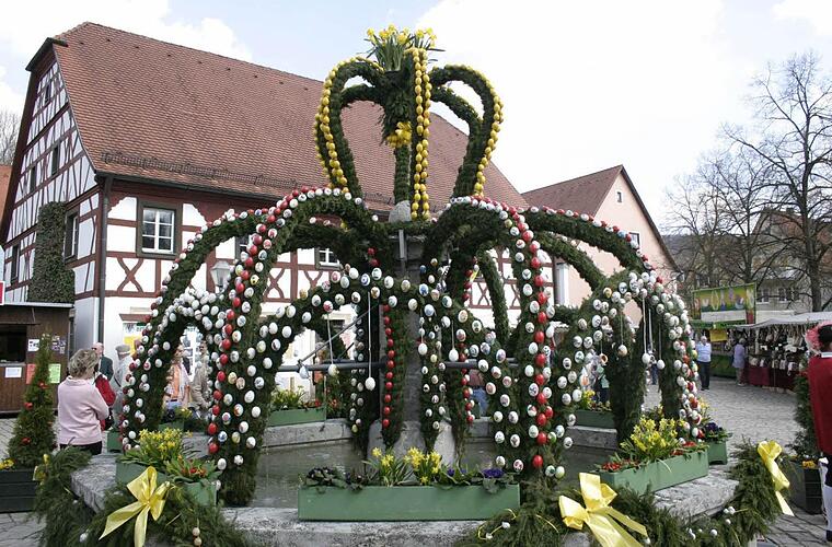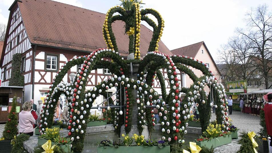 Heiligenstadt hat gelernt, seinen Osterbrauch gewinnbringend einzusetzen. Auch im Herbst wird der Brunnen behängt.