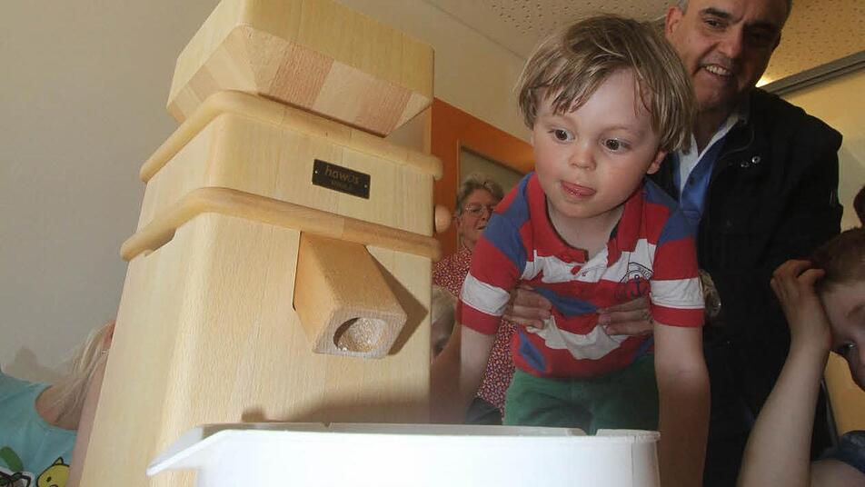 Mit dem Hinweis, dass nun alle evangelischen Kindergärten versorgt seien, erklärte Müller-Schimmel, dass mit dem Geschenk allerdings auch eine Pflicht verbunden sei. "Mit der Mühle ist eine Bedingung verbunden: Sie muss mindestens einmal die Woche in Betrieb genommen werden - gerne aber auch fünf Mal die Woche." Das dürfte angesichts des Ansturms auf die Mühle bei der Inbetriebnahme aber kein großes Problem darstellen.