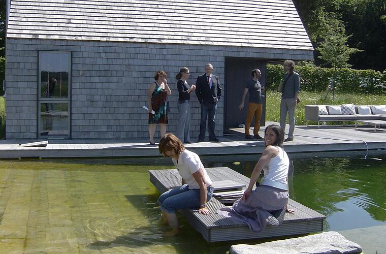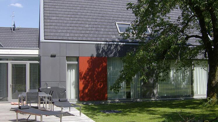 Fast unauffällig steht dort seit 2006 der große Neubau und lockte doch schon zahlreiche Besucher, vor allem Architekten an, die sogar mit einem Bus angereist kamen. "Dass das Haus nicht auffällt, war, was wir uns gewünscht haben. Viele dachten, es handelt sich um einen Umbau oder eine Renovierung", erklärt der Architekt Markus Gentner den Besuchern beim "Hausbesuch" bei den Hausherren, dem Ehepaar Edda und Thomas Wesolowski.