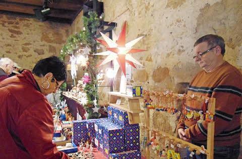 Jeder Künstler hat andere Ideen und verwendet anderes Material. Die eine Künstlerin verwendet Muranoglas, die anderen Perlen oder fertigen Schmuck aus versteinertem Holz an. "Meist sind wir um 15 Uhr schon ausverkauft", sagen die beiden Frauen, die in Kitzingen eine kleine Lebküchlerei haben und wegen ihrer Stammkundschaft am Adventsmarkt aus Kitzingen hergefahren sind. Auch bei den anderen Ausstellern herrscht bereits nach Eröffnung des Markts Andrang. Viele Besucher kamen mit schöner Ware als Mitbringsel, als Geschenk oder für die eigene Verwendung wieder nach Hause.