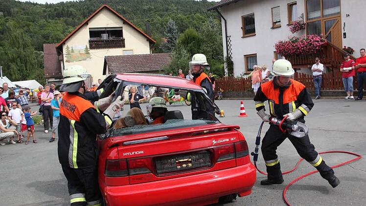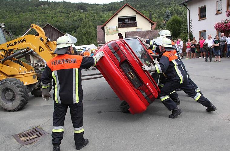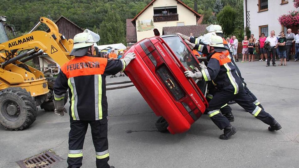 Das Dorffest in Oberleinleiter nutzt die örtliche Feuerwehr auch zu einer Leistungsshow. Daneben gibt es viel Spaß, Spiel und leckeres Essen.