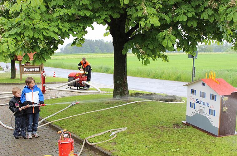 Da freuten sich zum einen die Kinder und die Eltern über allerhand interessante Spiele rund um das Thema Brandschutz. Dazu gehörte unter anderem ein Zielspritzen auf ein brennendes Häuschen aus Pappe, eine Mal- und Bastelecke sowie eine Fahrzeugschau oder auch Übungen mit dem Feuerlöscher.
