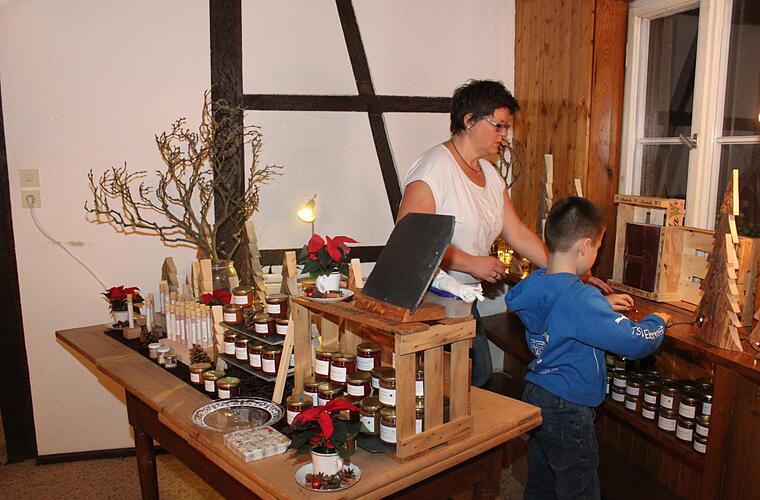 Wer daheim selbst räuchern möchte, kann sich von Carola Speerschneider im "Böhmshaus" beraten lassen. Sie verkauft hier Kräutermischungen und Zubehör, zum Beispiel zur Reinigung oder zum Schutz. Sie zeigt auch Kräuterbüschel, die jeder im Sommer selbst herstellen kann. Und sie hat selbst gemachte Duftöle aus der Breitenbach-Apotheke vorrätig. Sonja Kropfeld bietet selbst hergestellte Marmeladen und Kräutersalze an. Elisabeth Vorstoffel dagegen hat aus Walnüssen Plätzchen und Pesto gemacht und die Nüsse in Honig eingelegt. "Die Besucher sollen mit allen Sinnen genießen, aber auch innehalten können. Und sie können sich trauen, auch mal etwas für andere zu tun", meint Helga Schramm, als sie den letzten Wunsch am Wunschbaum aufhängt. Interessierte können dann im Rewe-Markt die Karten abnehmen und sich bei Consolare melden, damit sie mit den Wünschenden in Verbindung treten können.