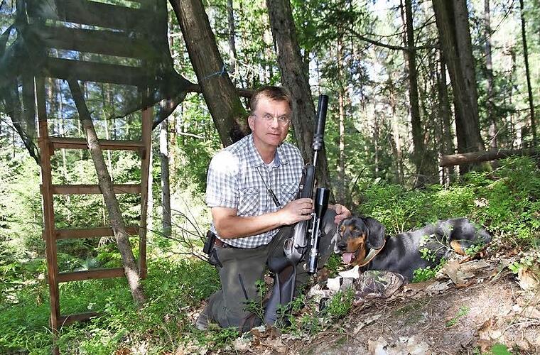 Sind etwa zu viele Rehe im Wald, verbeißen sie die jungen Baumtriebe. Deshalb sieht man Erich Daum immer mal wieder mit der Flinte im Wald. Neuerdings ist sein Repetiergewehr mit Kaliber 8x57 mit einem Schalldämpfer ausgestattet.