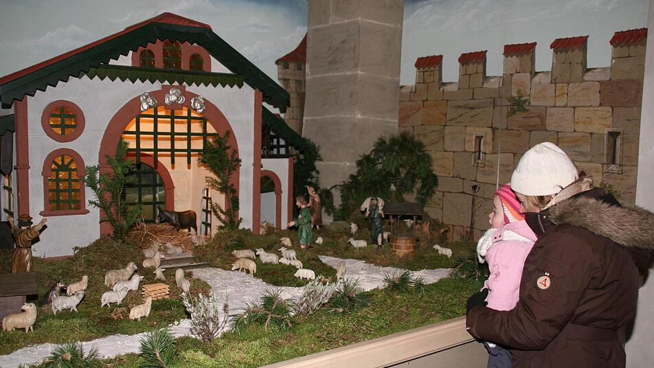 Krippe mit 120 Figuren Dann können die Besucher den Rundgang über die Pfarrkirche mit ihrer Barockkrippe und die evangelische Christuskirche mit einer aus der Margarete- Ostheimer- Schule stammenden rustikalen Geburtsszene fortzusetzen.