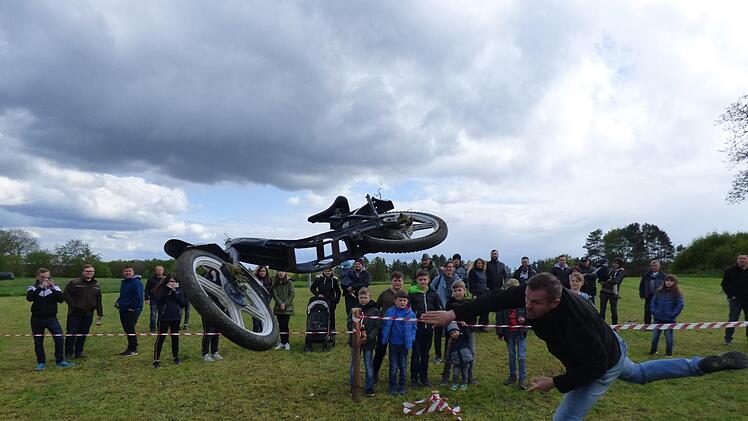 Beim Gaudiwettbewerb in Gösseldorf wurde im sechsten Anlauf ein neuer Mofaweitwurf-Weltmeister gekürt. Jörg Richter heißt der Nachfolger von Marco Niegel.