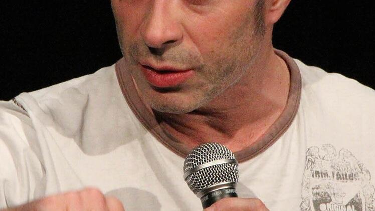 Zielsicher verstrickt sich Rolf Miller in der Eggerbachhalle im Dings, im Gewirr seiner Halbsätze. Und wie der nordbadische Westfranke das macht, ist einzigartig. Miller radebrecht über Beziehungskrisen (Eine Frau die ein Jahr lang schweigt, das hörst ja ), über Seitensprünge (Ich mag Kinder, aber nicht daheim) und Überlebens-Strategien wie sie der "Spinnenfresser" praktiziert. "Der überlebt manchmal bis zum Abend. Nichts gegen ein Vorurteil."