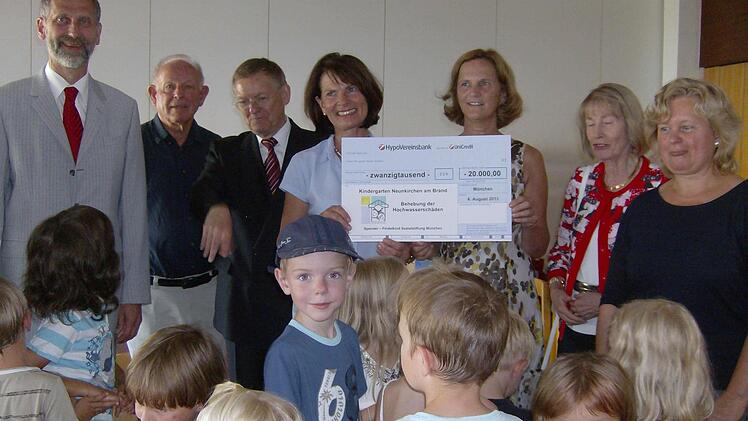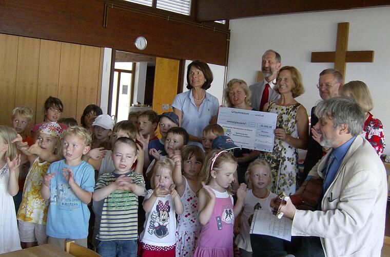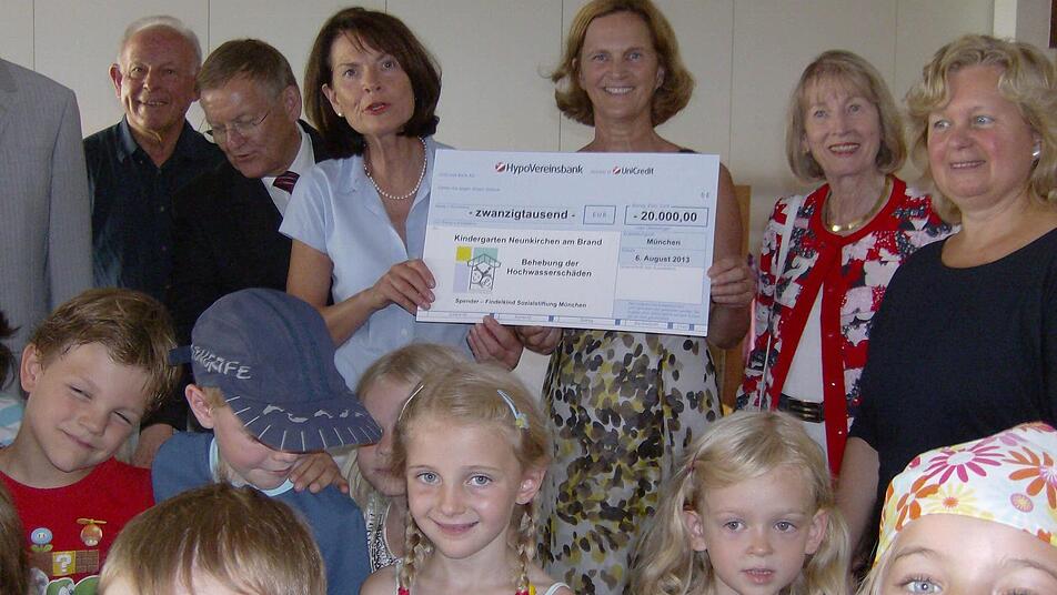 Karin Seehofer klatschte mit und lachte die Kleinen an. Und doch wusste sie, wie viel Mühe es die Erzieherinnen gekostet hat, einen täglichen und reibungslosen Kindergartenbetrieb aufrechthielten. Als Schirmherrin für dieses Projekt der Findelkind-Sozialstiftung überreichte Karin Seehofer einen Scheck in Höhe von 20 000 Euro. "Ich kann mir vorstellen, dass das Geld sehr notwendig gebraucht wird", sagte Seehofer.