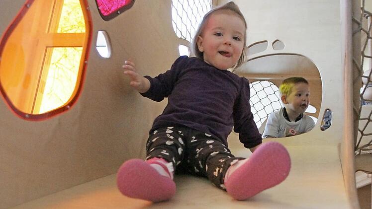 Für die 24 Kleinen, deren Tische und Stühlchen an die Sieben Zwerge erinnern, hat die Stadt Forchheim 850.000 Euro ausgegeben. Am Freitag wird die Kindertagesstätte unter der Leitung von Isabell Habermann offiziell eröffnet. Architekt Volker Rosbilgalle hat bei der Ausstattung des 200 Quadratmeter großen Kinderparadieses wirklich an alles gedacht. So sind in den Türen zu den beiden Gruppenräumen kleine Fenster ausgespart, damit man sieht, wer hinter der Tür ist.