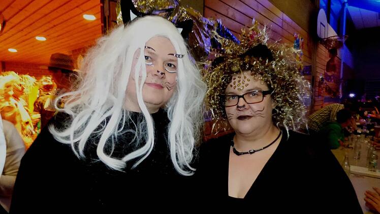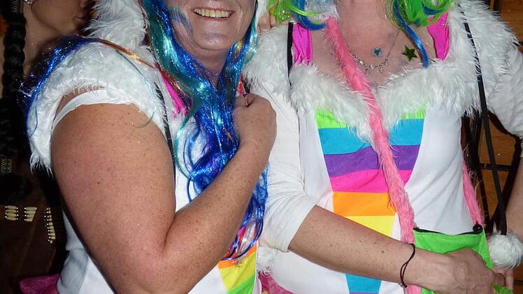 Bis plötzlich die Regenbogenmonster aus dem Ahorntal den Saal mit den bunten Farben des Regenbogens erhellten. Zwei Katzen aus Hubenberg fanden das klasse. Unter den Gästen gab es kaum einen, der nicht verkleidet war. Auch Klaus Hauenstein, Chef des SV Kirchahorn, der selbst als OP-Arzt verkleidet war, fand den Einfallsreichtum und die vielen Masken toll.