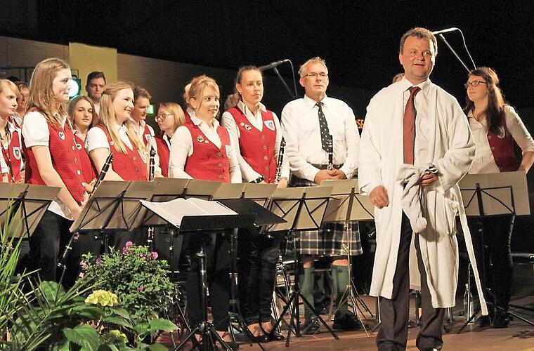 Dirigent und Ausbilder Wojciech Grabietz hatte ebenfalls Freude am Konzert, er gab beim Dirigieren wirklich alles - da fielen schon mal die Noten zu Boden. Voller Schwung präsentierten die Juniororchester "Air of Nobility" von James Swearingen, die "Checkpoint-Overture" von Fritz Neuböck und "Rule Britannia". Spätestens beim "Banana Boat Song", den Harry Bellafonte bekannt gemacht hat, hatten die jungen Musiker ihr Publikum in der Tasche. Nach dem "Italian Carousel" bedankten sie sich mit einem Abba-Song beim "besten Publikum, das wie je hatten."