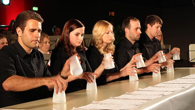 Musik mit Biergläsern Und das Schlagzeugensemble Alexander Drummer, Emma Lochner, Madeleine Lohs, Andy Nagengast und Holger Grünsteudel zeigte, dass handelsübliche Biergläser für rhythmische Musik durchaus geeignet sind.