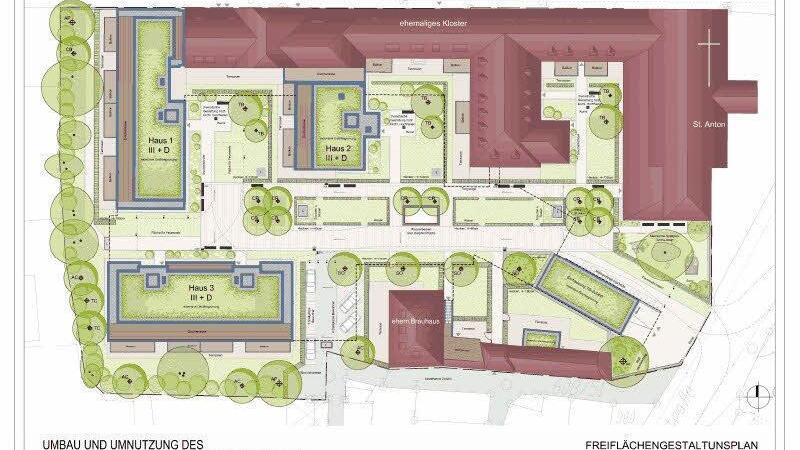 Die konkreten Umbaupläne hat die Immobilien-Firma am Montag im Bauausschuss präsentiert. Das Immobilienunternehmen realisiert auf dem Klosteranwesen bis Ende des nächsten Jahres genau 57 Wohnungen. Im historischen Klostergebäude entstehen 19 Wohnungen.