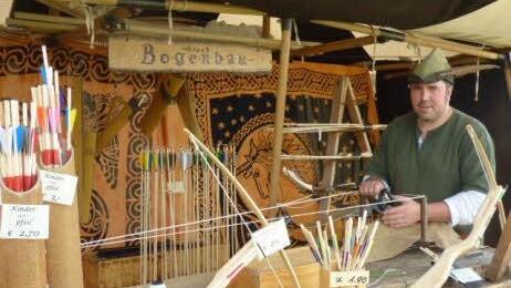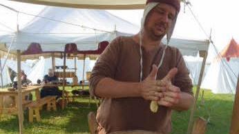 Das betont auch Mathias Alt, genannt "Matjes" von einer Mittelaltergruppe aus Fulda mit einem lateinischen Namen der übersetzt "Männer und Frauen aus Fulda" heißt. "Matjes" moderiert seit vier Jahren die Feldschlachten und wenn er dort nicht gerade im Einsatz ist, backt er "Krummkrapfen" Eine Mehl-Käsespeise mit Sauerkirschsoße nach einem Rezept aus dem 14. Jahrhundert. "Das ist einer der schönsten Märkte die ich kenne. Familiär, freundschaftlich, einfach schön und es macht sehr viel Spaß", sagt Mathias Alt.