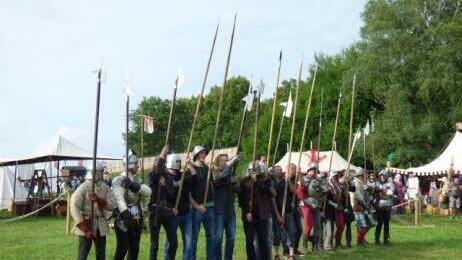 Stammgäste sind schon lange die Baieruther Katzbalegery die eine Söldnergruppe anno 1475 darstellen. Diese historische Abteilung der Bayreuther Turnerschaft gibt es seit 15 Jahren erklärt Pedro de Alvarez, der bürgerlich Peter Sperner heißt und Techniker der Gruppe ist. Warum der Name "Katzbalgerey" ? Dazu gibt es zwei Versionen, erklärt Pedro de Alvarez. "Im dichten Schlachtgetümmel balgt man sich mit einen kurzführigem Schwert wie die Katzen." Das ist eine der Erklärungen warum "Katzbalgerey" Die andere: "Der Balg einer Katze hat als Scheide für das Schwert gedient".
