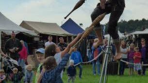 Neu diesmal auch die "Feldschlacht" für Kinder im Keltendorf in dem auch ein handbetriebenes Karussell lief. 45 Händler und Handwerker wie Schmiede, Drechsler, Bader, Korbflechter, Zinngießer, Löffelschnitzer und viele andere hatten ihre Stände aufgebaut und gaben Einblick in längst ausgestorbene Berufe des Mittelalters.